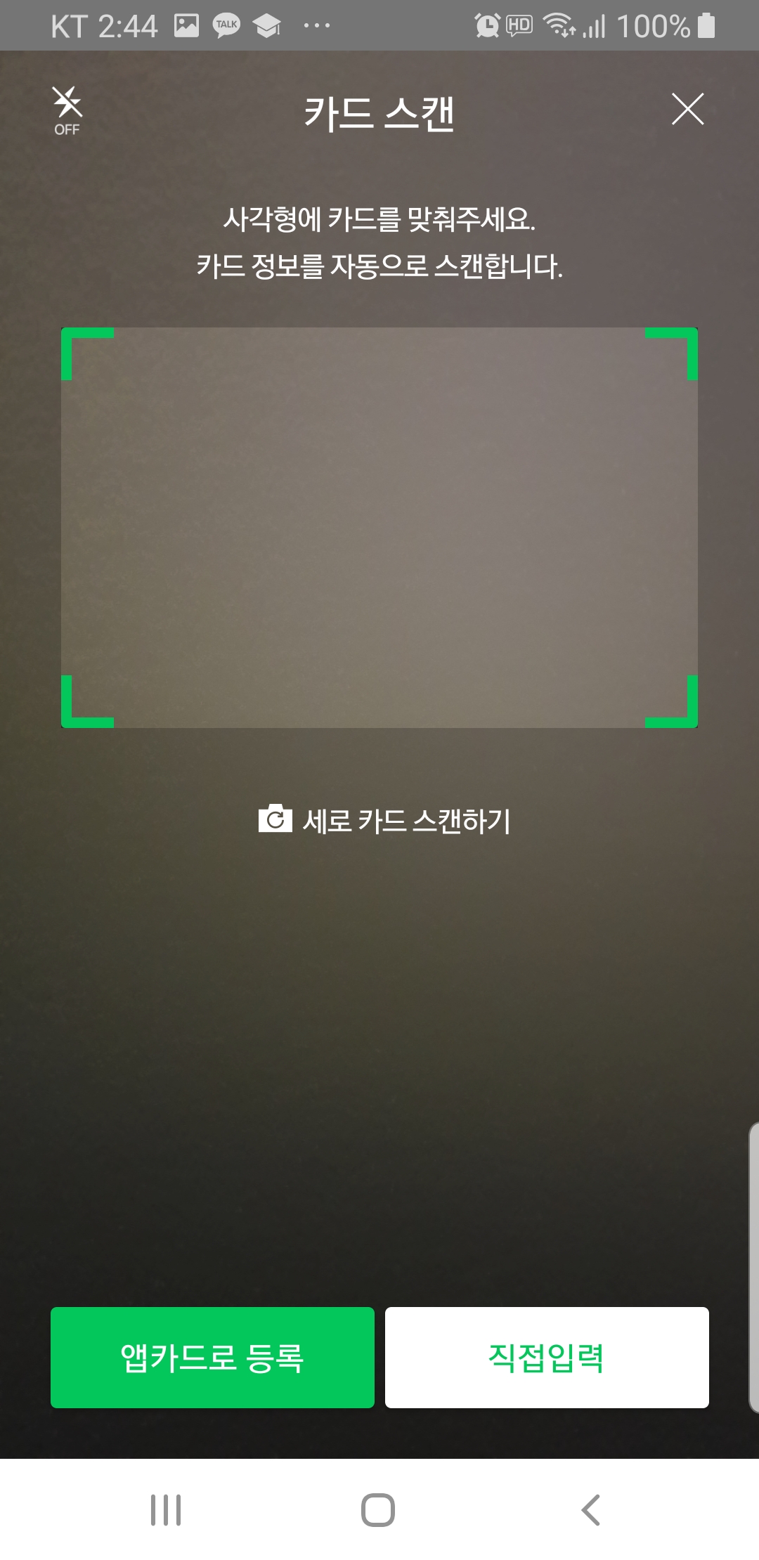 카드스캔하고 간단한 입력사항을 기입하면 가입완료가 됩니다.